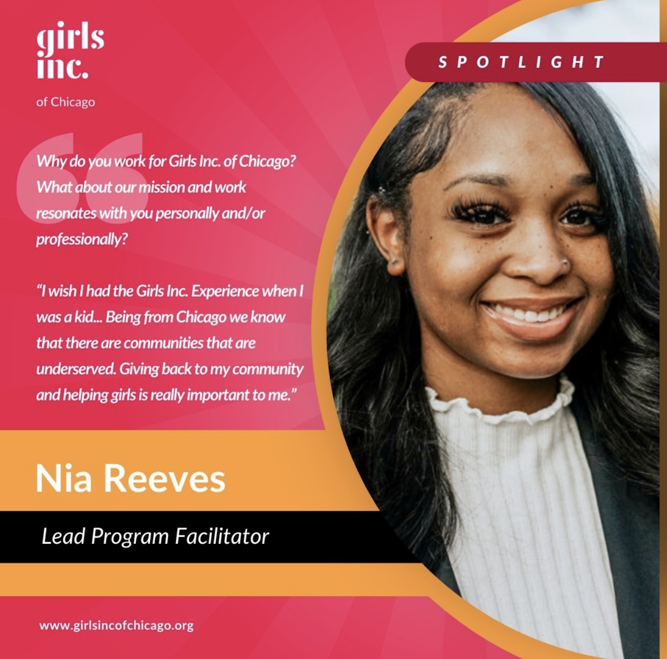 At Girls Inc. of Chicago, promoted from Lead Program Facilitator to Senior Engagement Associate in recognition of strong leadership, organization, and impact.